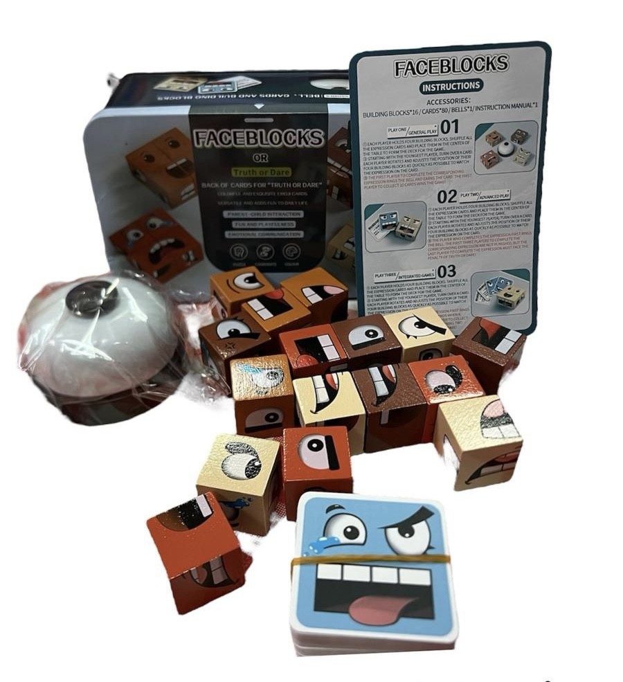 Drewniane klocki gra Minki z dzwonkiem buźki układanka 165187
