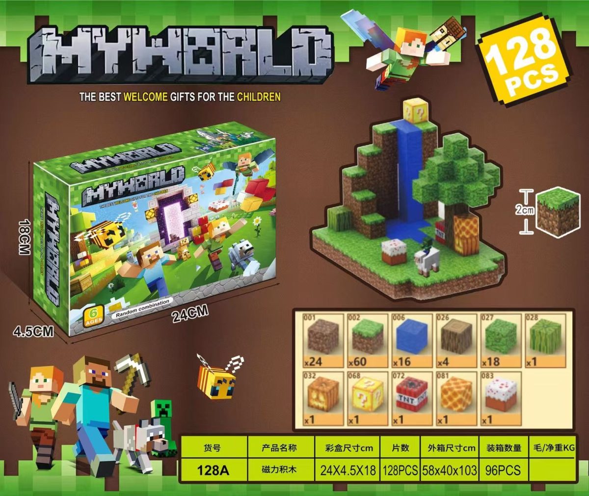 Duży zestaw klocki magnetyczne dla dzieci 128 elementów