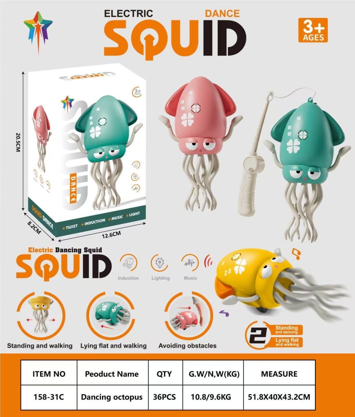 INTERAKTYWNA TAŃCZĄCA ZABAWKA OŚMIORNICA DLA DZIECI ŚWIECĄCA SQUID RUCHOMA