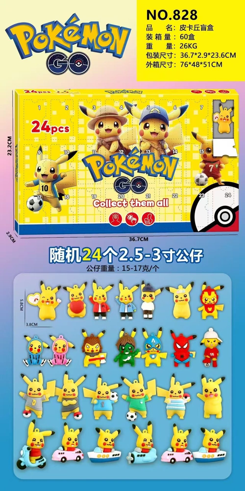 PIKACHU KALENDARZ ADWENTOWY 24NIESPODZIANKI FIGURKI DUŻE ODLICZANIE POKEMON