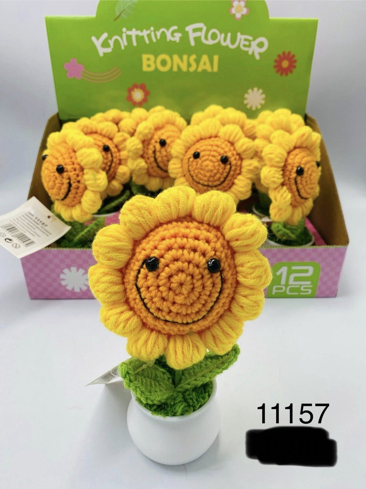 Rozmiar/Kolor: Ręcznie szydełkowany słonecznik z uśmiechem na łodydze